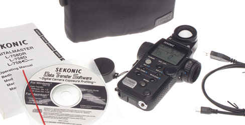 The Sekonic Digitalmaster L-758D meter offers the solution to variable ISO/EI ratings, and apparent sensitivity and contrast curves variations found in DSLRs. With a USB interface to link it up to a PC/Mac calibration program, the L-758D can remember three different cameras, two types of lighting (ambient or flash) and two measuring methods (incident or reflected) plus a range of ISO values for each of the cameras. There are twelve basic ‘profiles’ that can be stored, and within each profile a range from ISO 3 to ISO 8000.